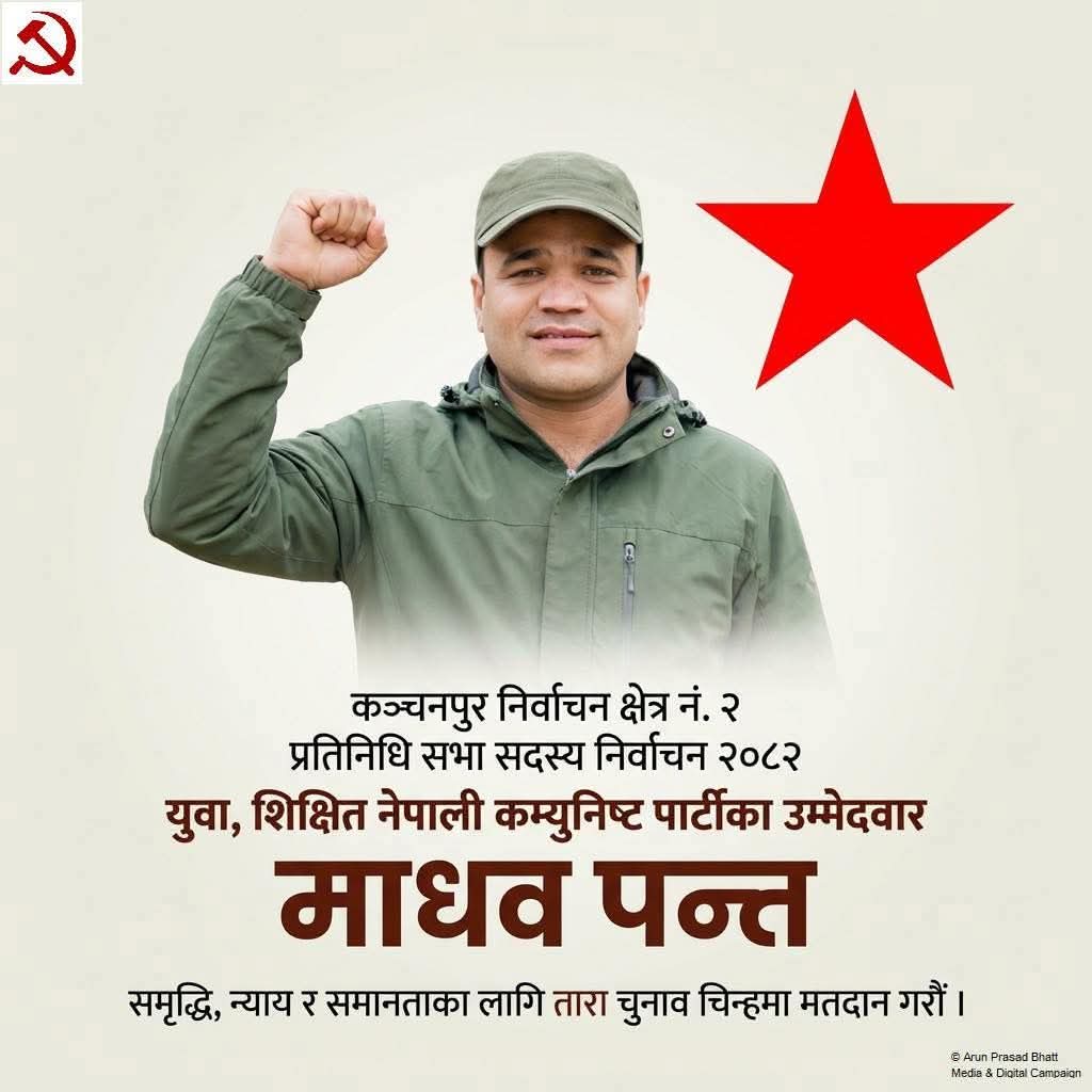 कञ्चनपुर। प्रतिनिधि सभा सदस्यका लागि कञ्चनपुर निर्वाचन क्षेत्र नम्बर २ मा नेपाली कम्युनिष्ट पार्टी (नेकपा) का युवा उम्मेदवार माधवप्रसाद पन्त प्रति जनसमर्थन बढ्दै गएको छ। घरदैलो अभियानमा सक्रिय पन्तलाई मतदाताले सकारात्मक प्रतिक्रिया दिइरहेका छन्।