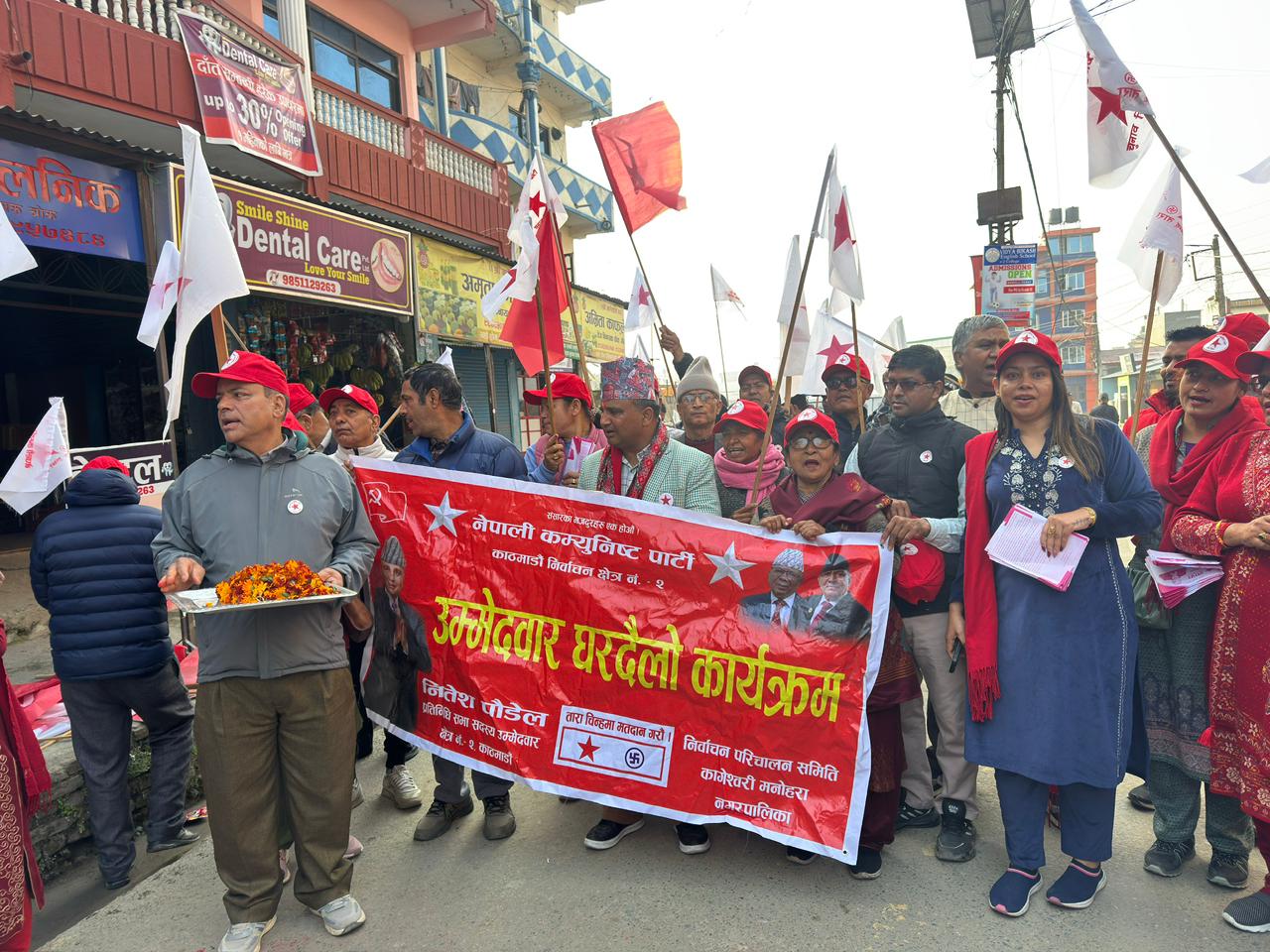 काठमाडौं । फागुन २१ गते हुने प्रतिनिधिसभा निर्वाचन नजिकिँदै जाँदा काठमाडौं क्षेत्र नम्बर २ मा चुनावी सरगर्मी दिनप्रतिदिन बढ्दै गएको छ। यहीबीच नेपाली कम्युनिष्ट पार्टी (नेकपा) का उम्मेद्वार नितेश पौडेलको चुनावी अभियानले सकारात्मक गति लिँदै गएको देखिएको छ। गाउँ गाउँ, टोल टोल र घर घरमा पुगेर मतदातासँग प्रत्यक्ष संवाद गरिरहेका पौडेलप्रति स्थानीय तहमा उत्साह र समर्थन बढ्दै गएको जनाइएको छ।