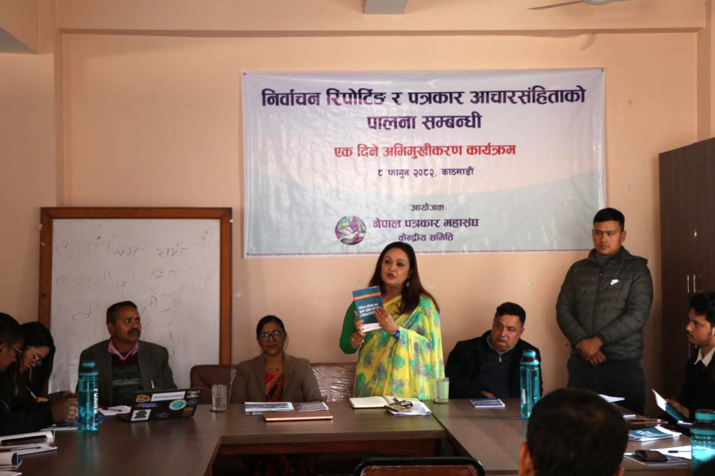 निर्वाचन रिपोर्टिङलाई तथ्यपरक, सन्तुलित र विश्वसनीय बनाउन महासंघले अभिमुखीकरण कार्यक्रम आयोजना गरेको जनाएको छ। कार्यक्रममा आचारसंहिताको प्रभावकारी पालना, जिम्मेवार समाचार सम्प्रेषण र पेसागत मर्यादाबारे स्पष्ट मार्गदर्शन दिइएको थियो ।