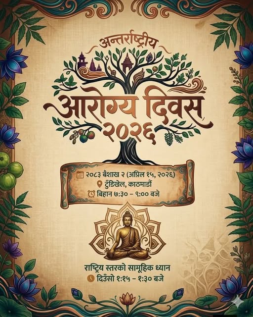 काठमाडौँ । आज वैशाख २ गते अर्थात अप्रिल १५ लाई अन्तर्राष्ट्रिय आरोग्य दिवस (वेलनेस दिवस) का रूपमा मनाउने निर्णय गरेसँगै देशभर जनचेतनामूलक कार्यक्रम आयोजना गरेर मनाइदै छ ।