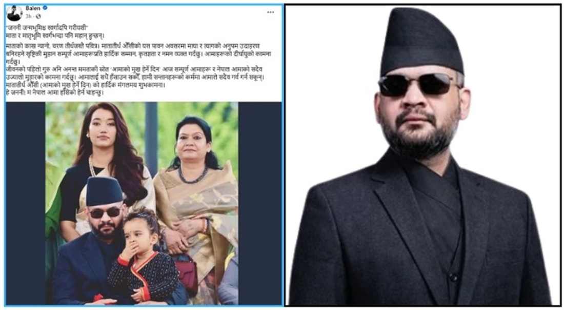 काठमाडौं ।  प्रधानमन्त्री बालेन शाहले मातातीर्थ औँसी अर्थात आमाको मुख हेर्ने दिनको शुभकामना दिर्दै फेसबुकमार्फत ‘माता र मातृभूमि स्वर्गभन्दा पनि महान् हुन्छन्’ भनेका छन्।