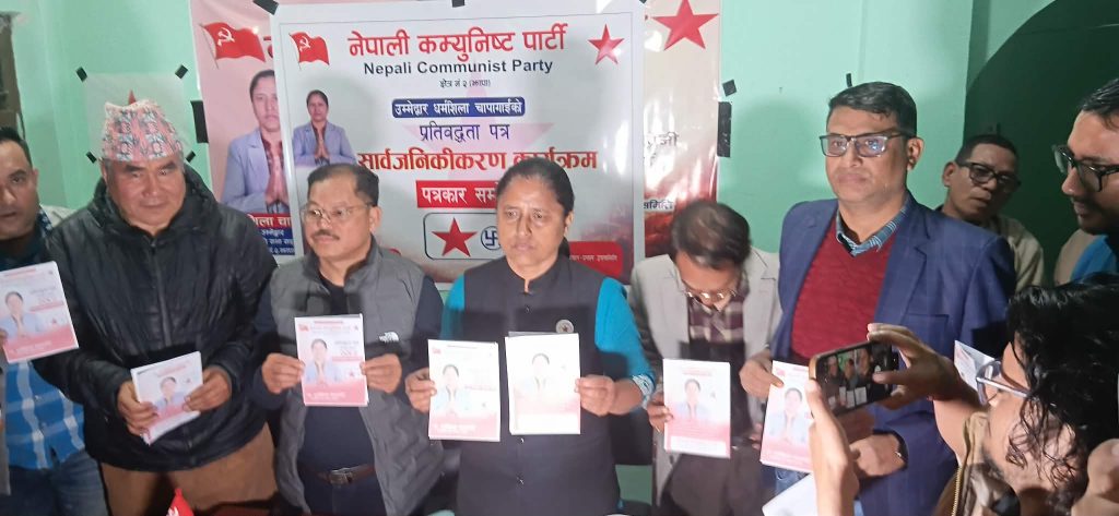 झापा । नेपाली कम्युनिष्ट पार्टीको तर्फबाट झापा–२ की प्रतिनिधिसभा सदस्य उम्मेदवार धर्मशिला चापागाईंले समृद्ध, न्यायपूर्ण र समुन्नत झापा–२ निर्माणको स्पष्ट दृष्टिकोणसहित २० बुँदे विस्तृत प्रतिबद्धता पत्र सार्वजनिक गरेकी छन् । आइतबार बिर्तामोडस्थित चुनाव परिचालन समितिको कार्यालयमा आयोजित पत्रकार सम्मेलनमार्फत उनले शिक्षा, स्वास्थ्य, पूर्वाधार, रोजगारी, पर्यटन, कृषि, सुशासन र सामाजिक न्यायलाई केन्द्रमा राखेर आफ्नो प्रतिबद्धता सार्वजनिक गरेकी हुन् ।