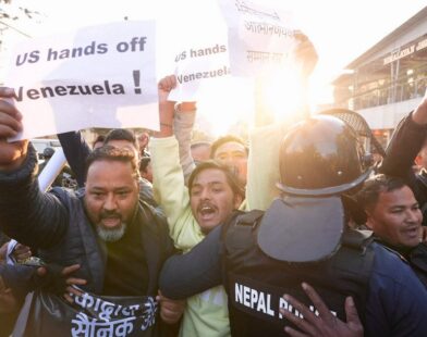 भेनेजुएलामा अमेरिकी सैन्य हस्तक्षेपको विरोधमा दूतावास नजिकै संयुक्त विद्यार्थी संगठनको प्रदर्शन