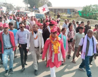 नेपाली कम्युनिष्ट पार्टी रौतहट ४ का उम्मेदवार रामकुमार भट्ट्राई रोड शो मा सहभागि