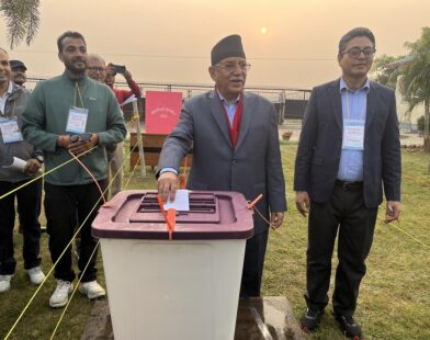 चितवनको प्रहरी स्कुलबाट प्रचण्डद्वारा मतदान